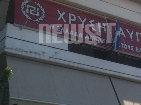 Ήδη απέναντι απ' τα γραφεία της Χρυσής Αυγής υπάρχει μια κλούβα των ΜΑΤ και λίγο πιο πάνω άλλοι αστυνομικοί. Με μια διαφορά όμως...